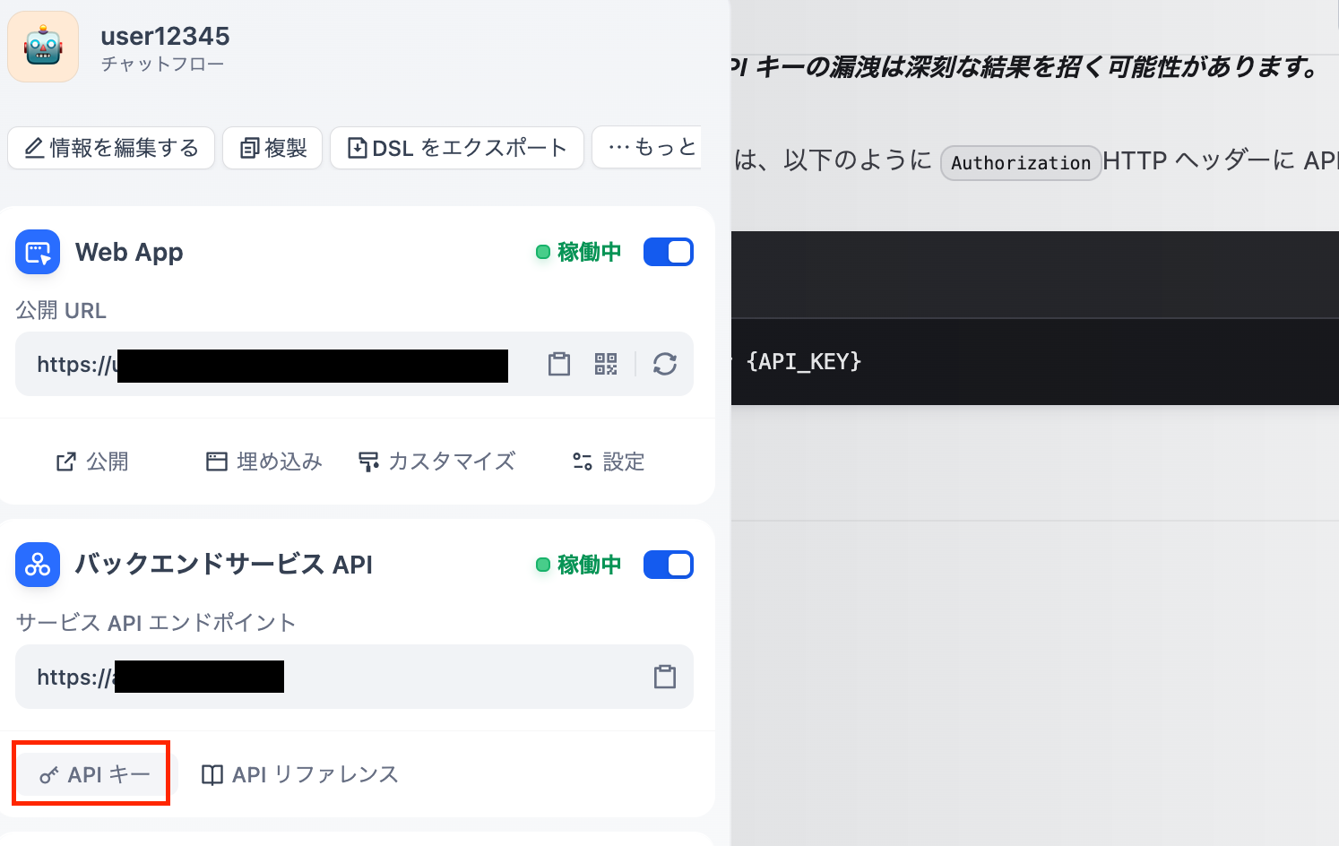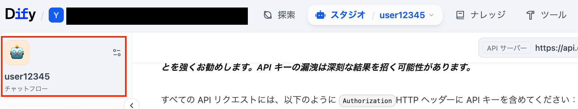 - Difyの画面に移動し、赤枠をクリックしましょう。