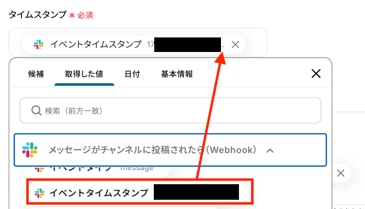 Webhookの受信設定が完了したら、必須項目を設定します。