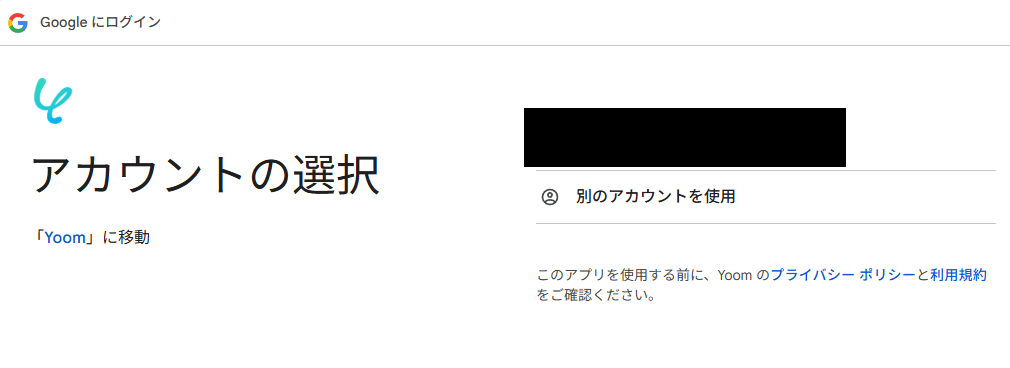 ※表示されたアカウント以外を連携したい場合は「別のアカウントを使用」をクリックし、連携したいアカウントでログインしてください。