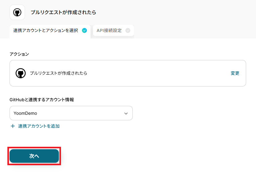 Yoomと連携するGitHubのアカウントに間違いがないかを確認し「次へ」をクリックしましょう。