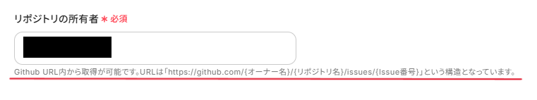 GitHubのURLから取得可能で、「https://github.com/{オーナー名}/{リポジトリ名}/issues/{Issue番号}」の{オーナー名}の箇所です。