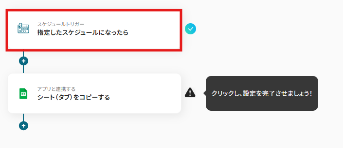 これで【指定のスケジュールになったらGoogle スプレッドシートをコピーする】というフローが完成です。