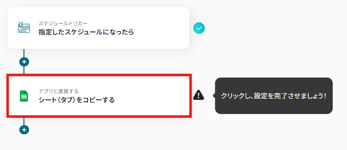 1) フローに戻り、「アプリと連携する シート(タブ)をコピーする」のアイコンをクリックします。