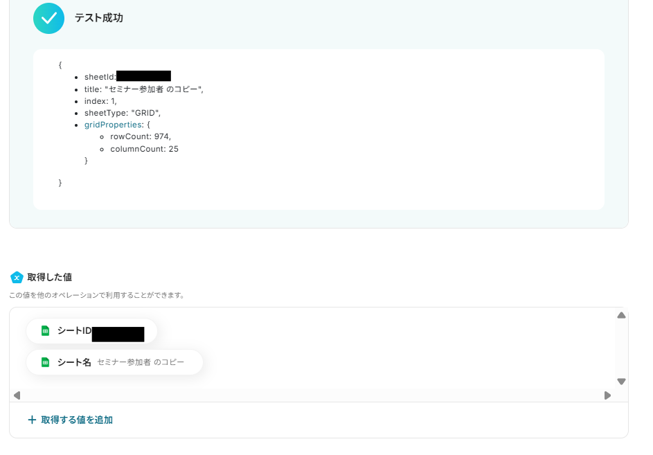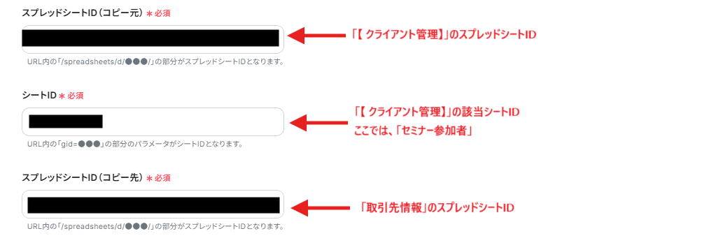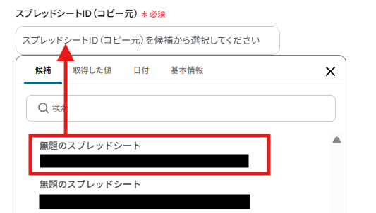 また、シートIDはスプレッドシートID(コピー元)を指定すると選択できるようになります。