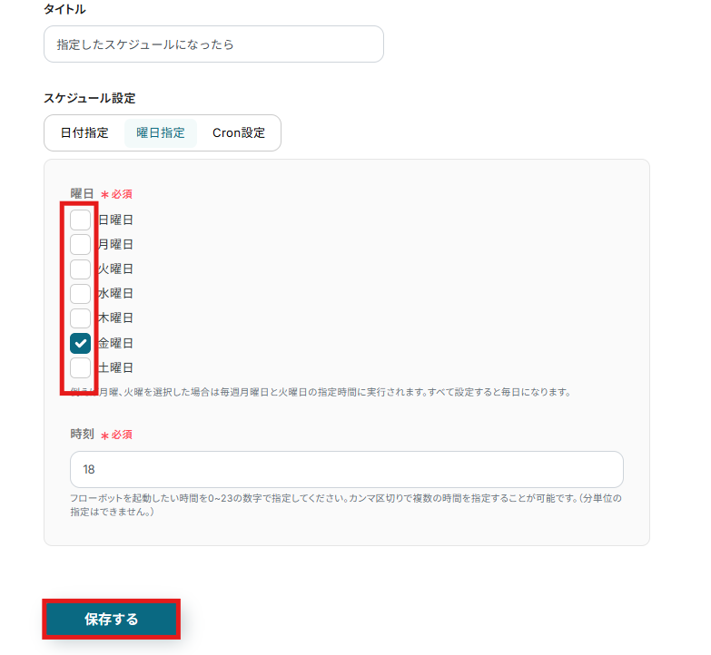 2) ここではすでに金曜日の18時に起動される設定になっています。