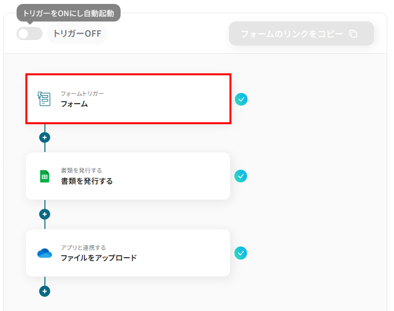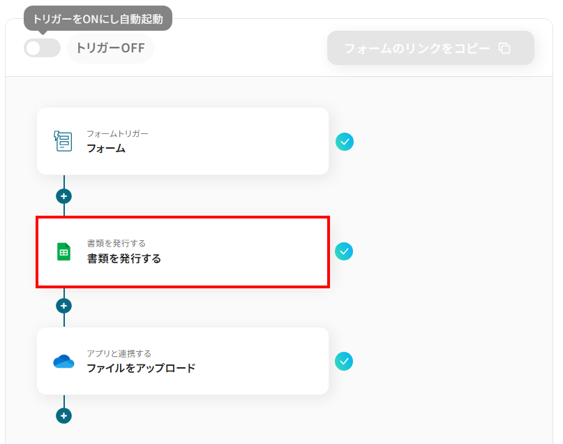 ※ここで一旦Google Driveに自動作成した請求書を格納した後、後続のフロー設定時にOneDriveに書類をアップロードする流れになります。