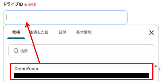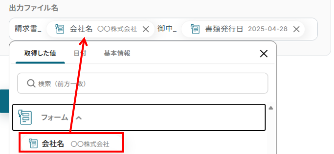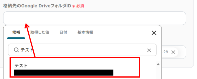 アウトプットとは、トリガーやオペレーション設定時に、「テスト」を実行して取得した値のことを指します。