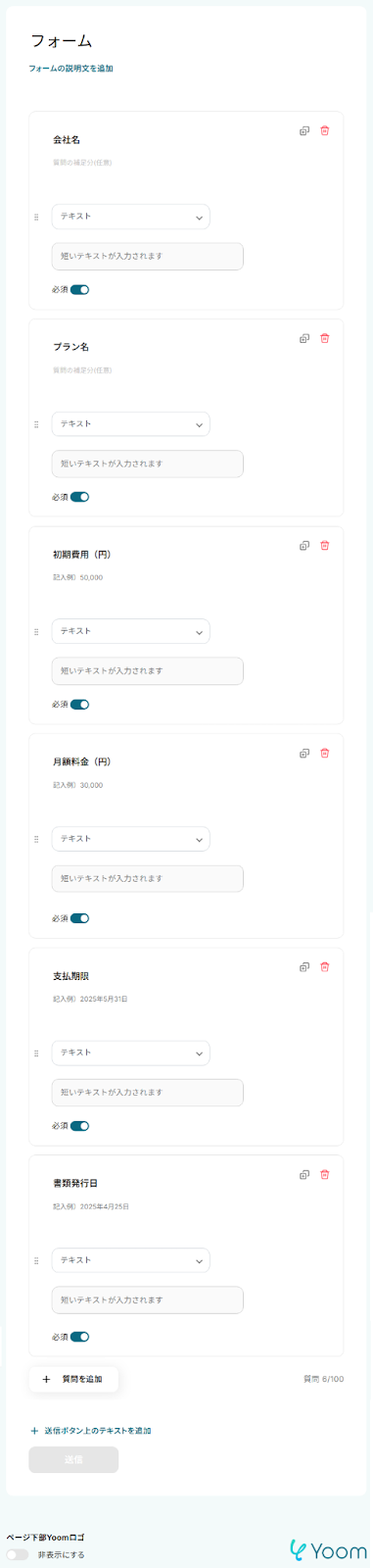 質問項目の追加や削除、回答方法の選択など自由にカスタマイズできるので、活用シーンに合わせて作成してみてくださいね!