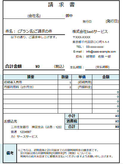 請求書の雛形は自由なフォーマットでご利用いただけます。