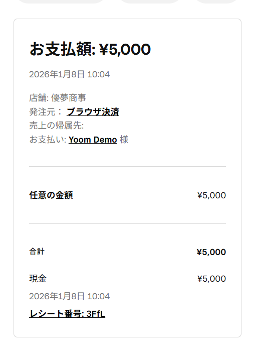 今回は例として以下のように支払いを完了させました。