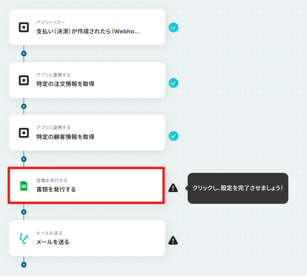 フローに戻り、「書類を発行する」のアイコンをクリックします。