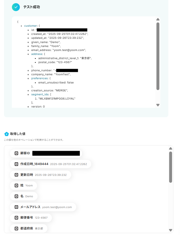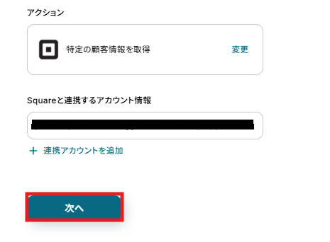 ステップ5:Squareの特定の顧客情報を取得する設定