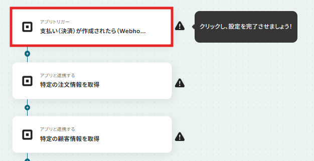 まずは「 支払い(決済)が作成されたら(Webhook)」をクリックしてみましょう!