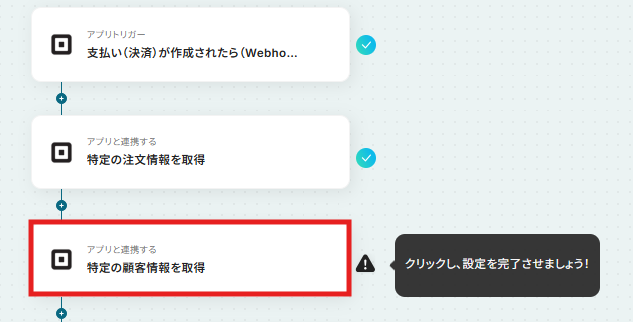フローに戻り、「特定の顧客情報を取得」をクリックします。