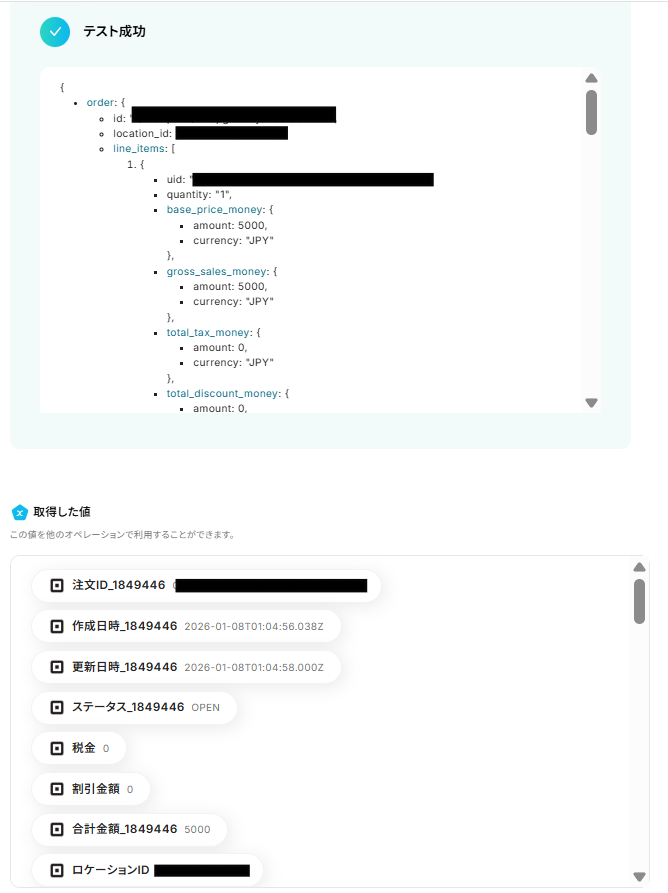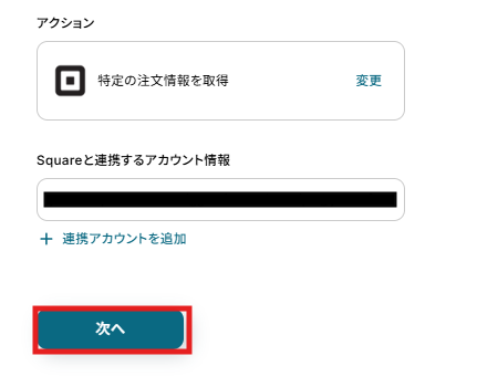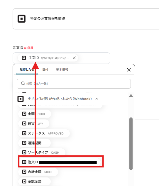 ステップ4:Squareの特定の注文情報を取得する設定