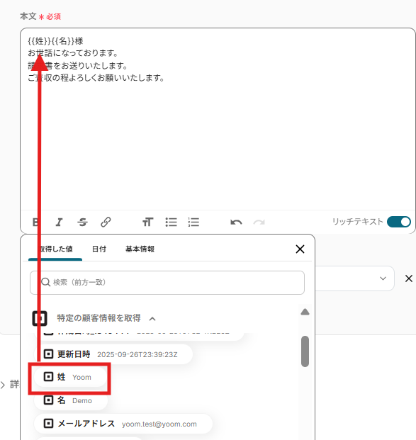 取得した値を活用することで、固定値ではなく、トリガーが実行されるたびに最新の情報が反映できます。