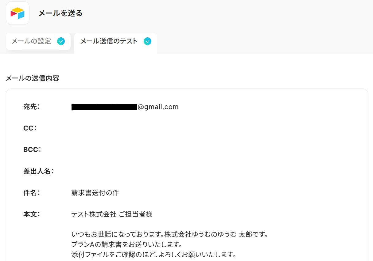 先ほど作成した請求書をYoomのメール機能で送付します。