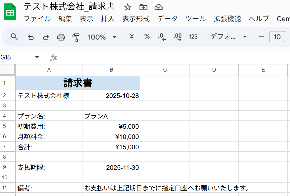 A:雛形となるGoogle スプレッドシートを自社仕様にカスタマイズすることで、会社のロゴや社印を入れたりインボイス制度に対応したフォーマットにしたりと、様々な形式でお使いいただけます。