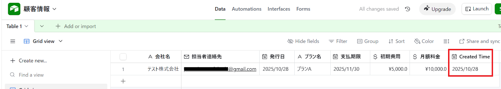 今回は「Created Time」という名称を使ってテーブルを作成しましたが、他の名称でも問題ありません。
