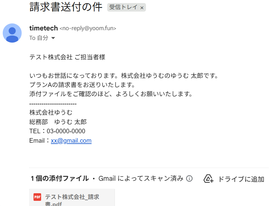 Airtableの情報をもとに作成された請求書が、Yoomのアドレスから送信されました!