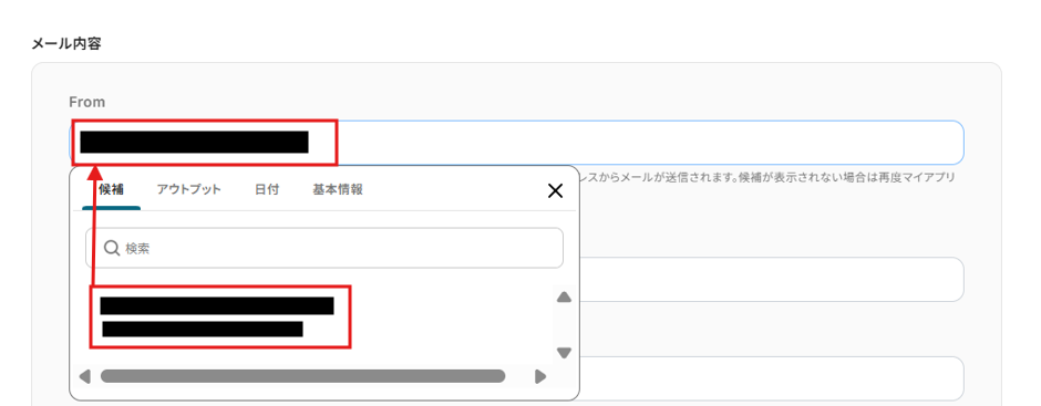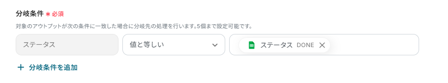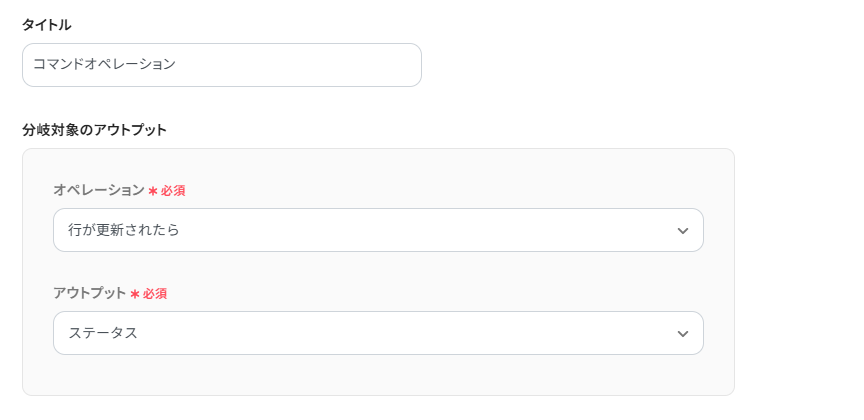 分岐対象のアウトプットは、プルダウンから以下画面通りに設定してください。