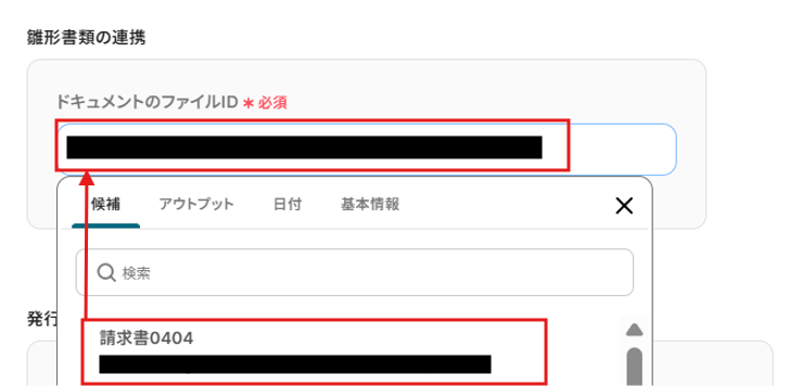 アウトプットから「顧客名」と「請求日」を選択しました。