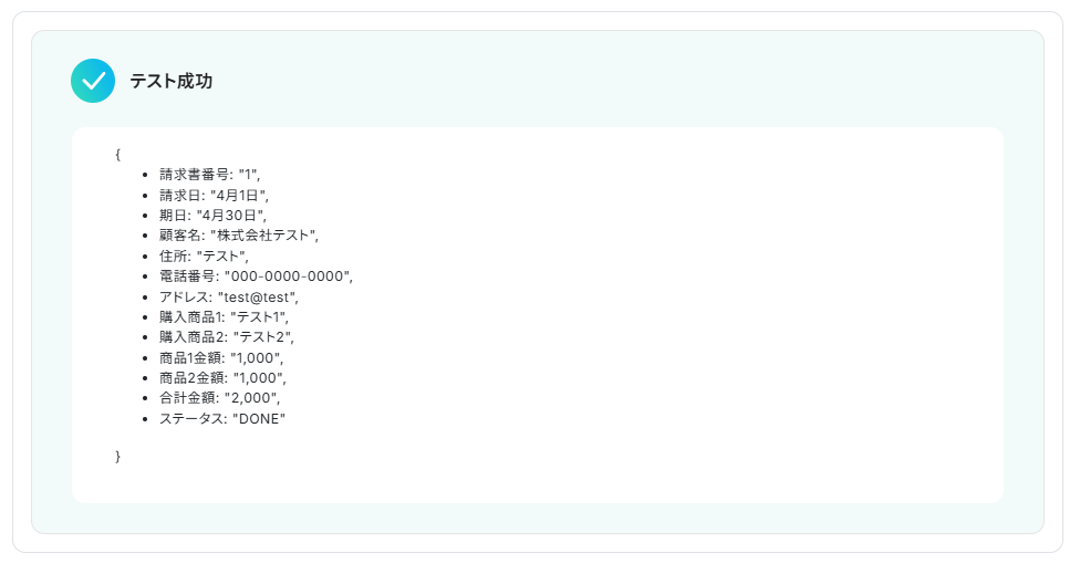 このワークフローでは、Google スプレッドシート上のデータ変更を起点にして、請求書の自動作成とチームへの通知を実現します。これにより、手作業での請求書作成や情報共有の手間を省き、業務をスムーズに進めることができます。