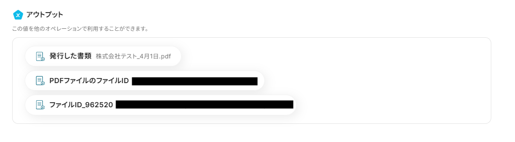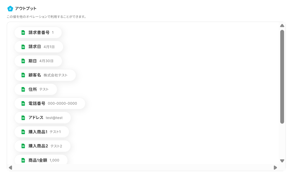アウトプットの値も取得できているのを確認して、保存して次に進みましょう。
