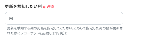 始まりをA列、終わりをM列にすることで、指定したA列からM列までが更新範囲になります。