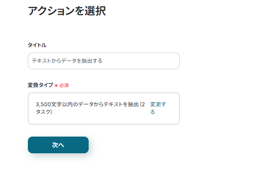 アクションを選択の画面はこのまま「次へ」をクリックします。