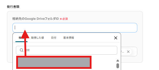 格納先のGoogle DriveフォルダIDも「候補」から選択します。