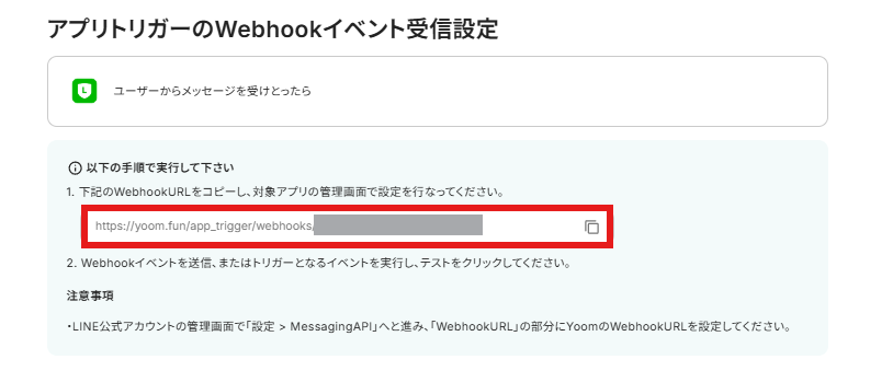 Webhookの設定画面が表示されるため、注釈に従って設定しましょう。