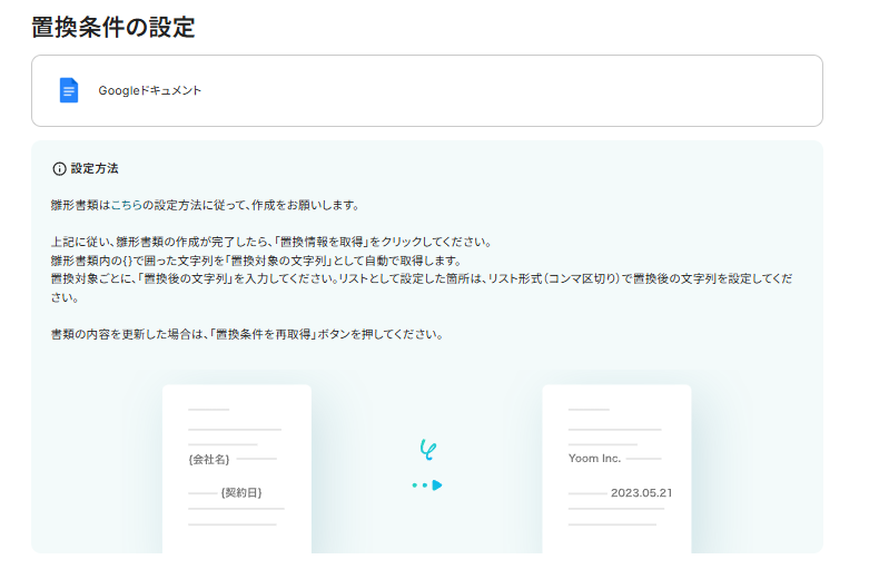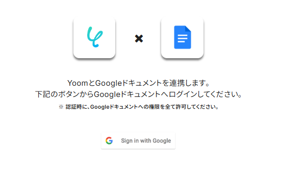 以下の画面のようにGoogleドキュメントの連携画面が表示されます。