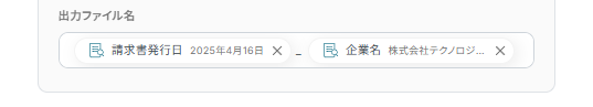 出力ファイル名は自動で「請求書発行日」「企業名」となっています。