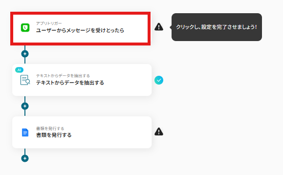 LINE公式アカウントで特定のメッセージを受け取ったことを、この自動化のトリガー(起点)とするための設定を行います!