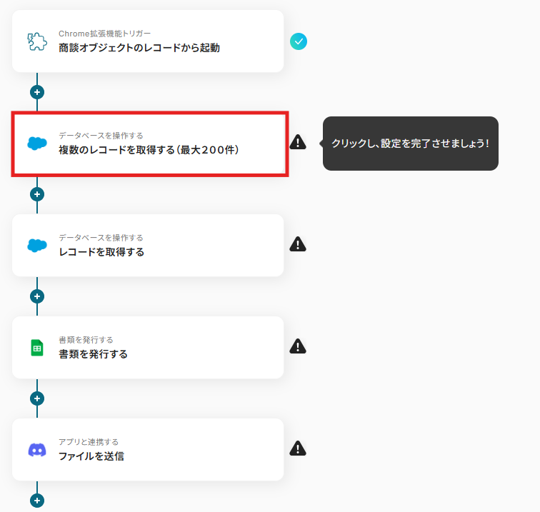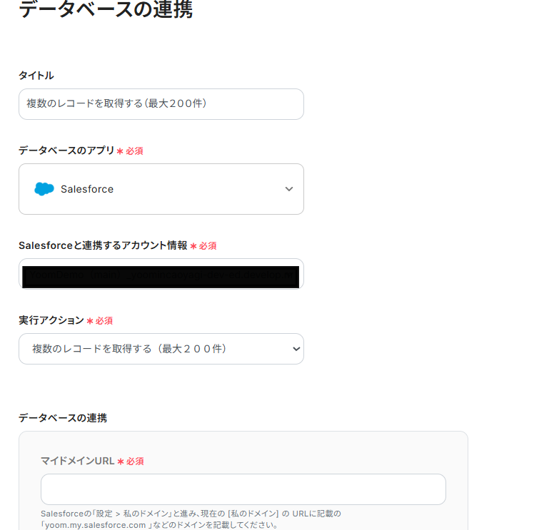 ステップ4:Salesforceのデータベースから複数のレコードを取得するアクションを設定