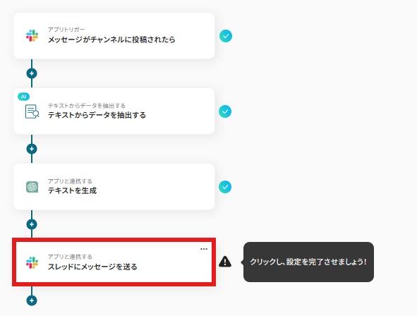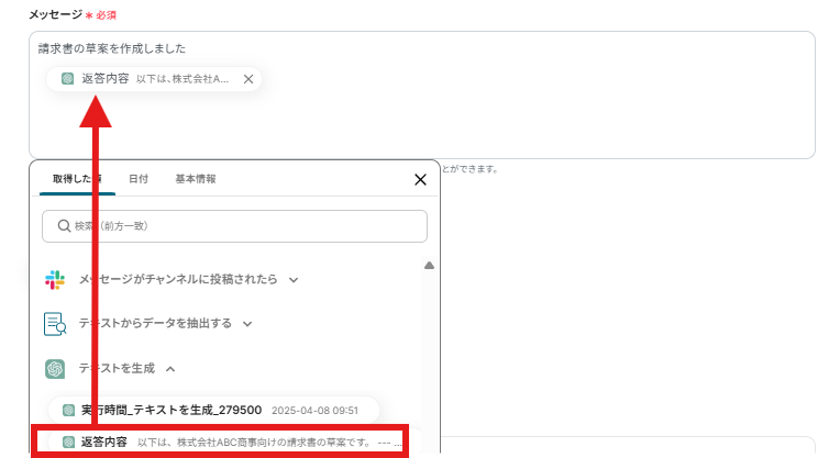 最後にChatGPTで作成した請求書の草案をSlackに送信するための設定を行いましょう!