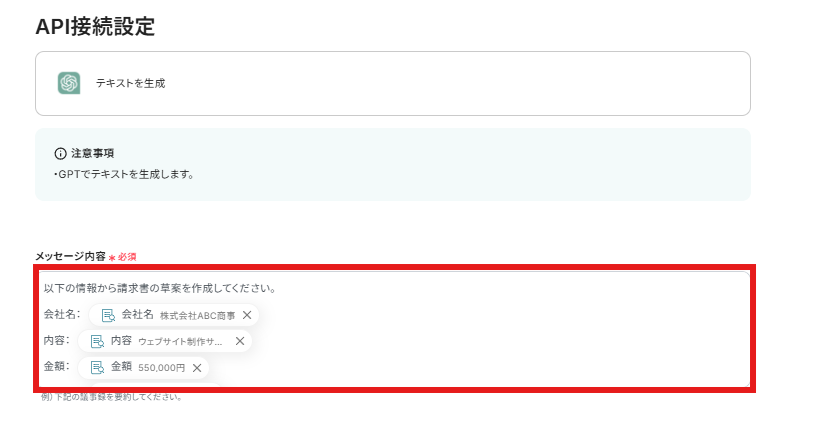 ステップ5:ChatGPTで請求書の草案を作成する