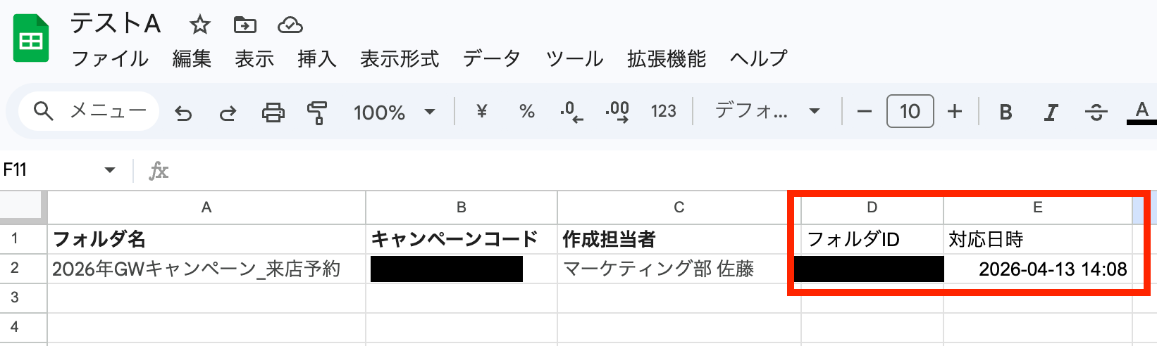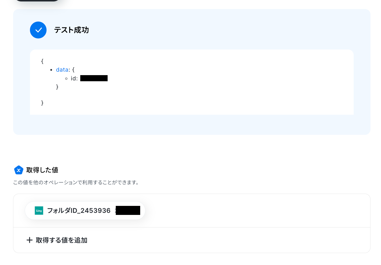 テストに成功すると、フォルダIDが取得されます!