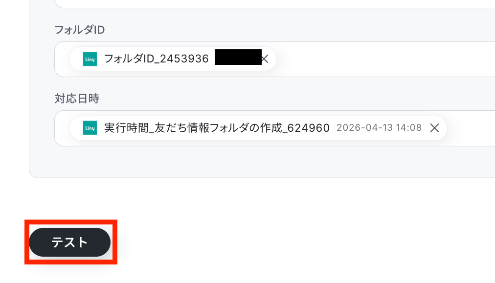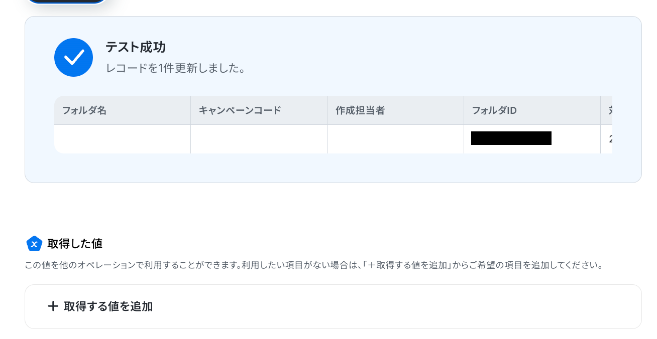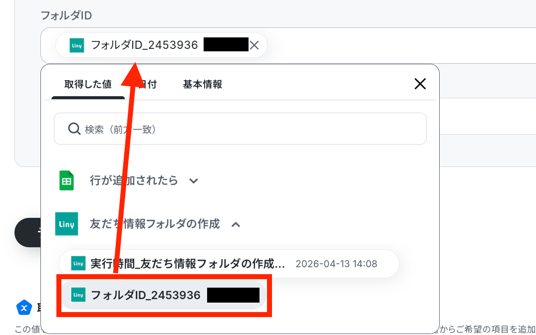 更新後のレコードの値に、Linyで取得したフォルダIDを設定します。