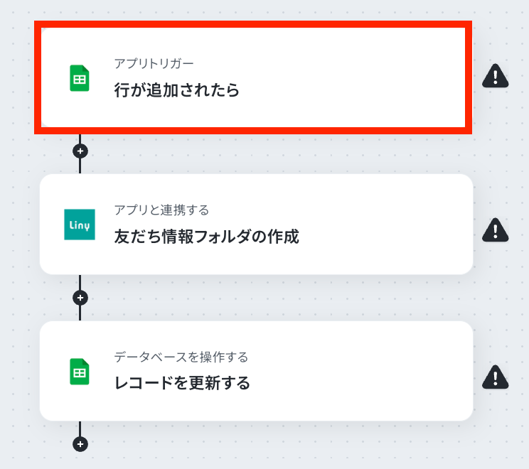 Google スプレッドシートの情報をもとにLinyの友だち情報フォルダを自動作成するフローを作ってみよう それではここから代表的な例として、Google スプレッドシートに行が追加されたら、Linyで友だち情報フォルダを自動作成する フローを解説していきます!