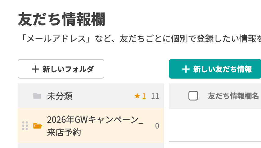 ※ Linyで新しく作成する「フォルダ名」を入力してください。 「フォルダID」は、後続のステップで更新するので空欄のままでOKです。 その他は任意で「担当者」や「対応日時」などの項目を追加しても良いでしょう! 詳しくは、下記をご参照ください。