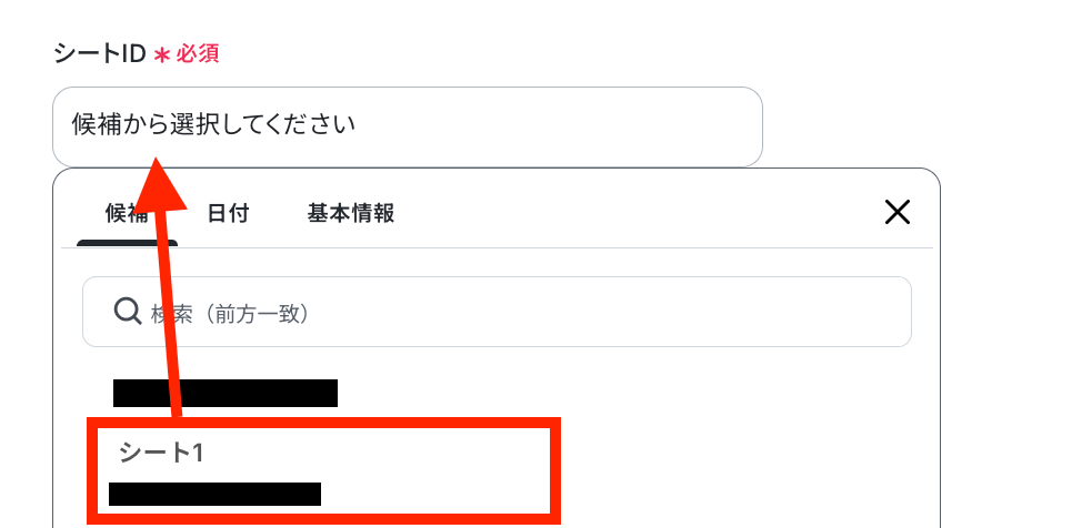 シートIDも、同様に候補から選択します。