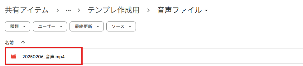 フローの作成を始める前に、あらかじめYoomと連携するGoogle Driveに、音声ファイルをアップロードしておきましょう!