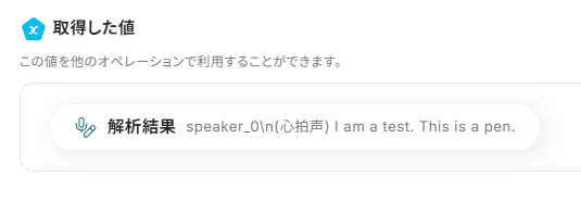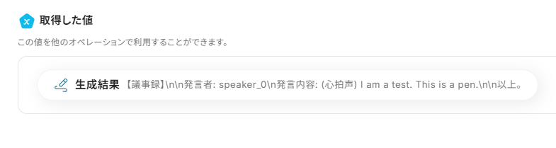 アウトプットとは、トリガーやオペレーション設定時に、「テスト」を実行して取得した値のことを指します。