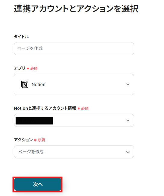 ステップ4:Notionにページを作成するアクションを設定