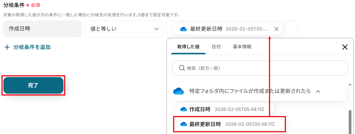 条件は「+ 分岐条件を追加」から最大5個まで設定できます。