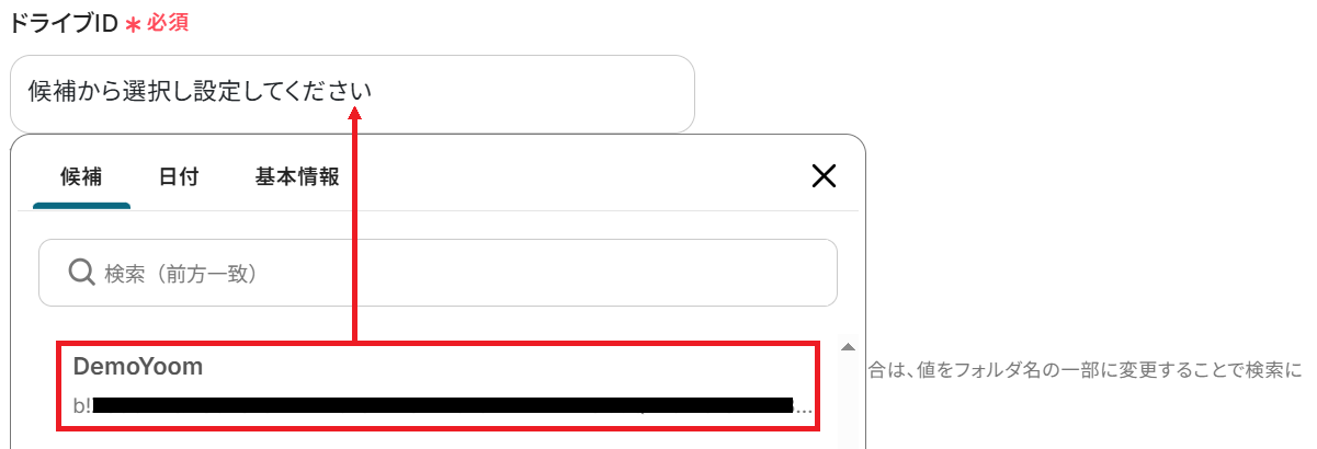 次に、先ほどフォルダを用意したドライブIDを候補から選択しましょう。