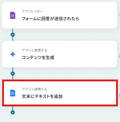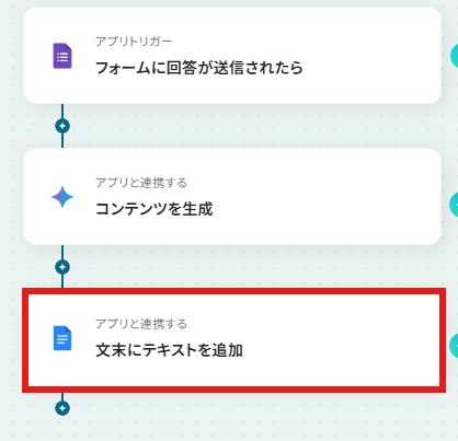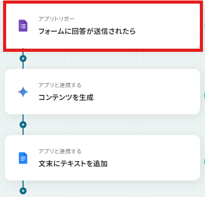 Googleフォームのトリガー設定とGemini、Googleドキュメントのアクション設定