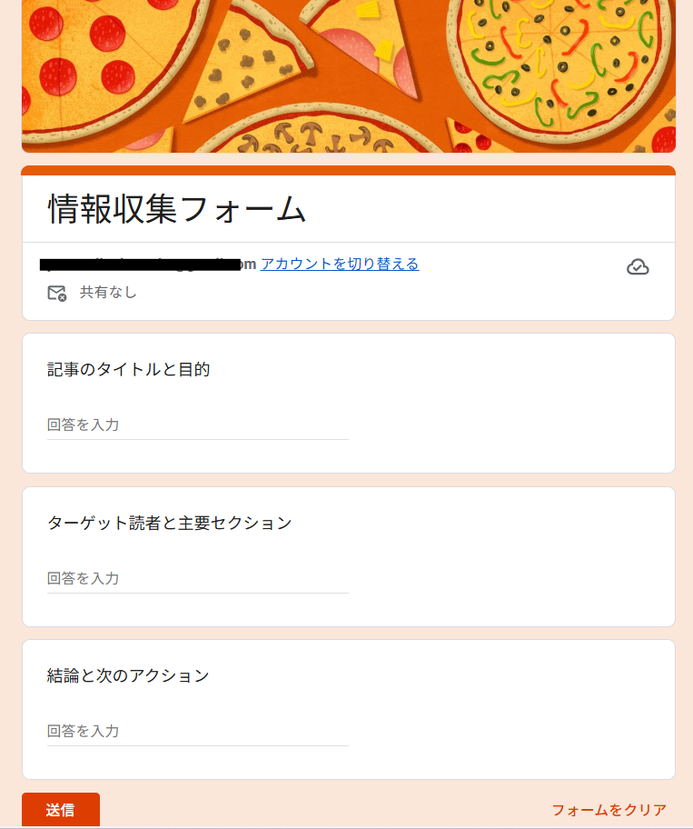 事前準備 Googleフォームで下記のようなフォームを作成し、回答を行っておきましょう。